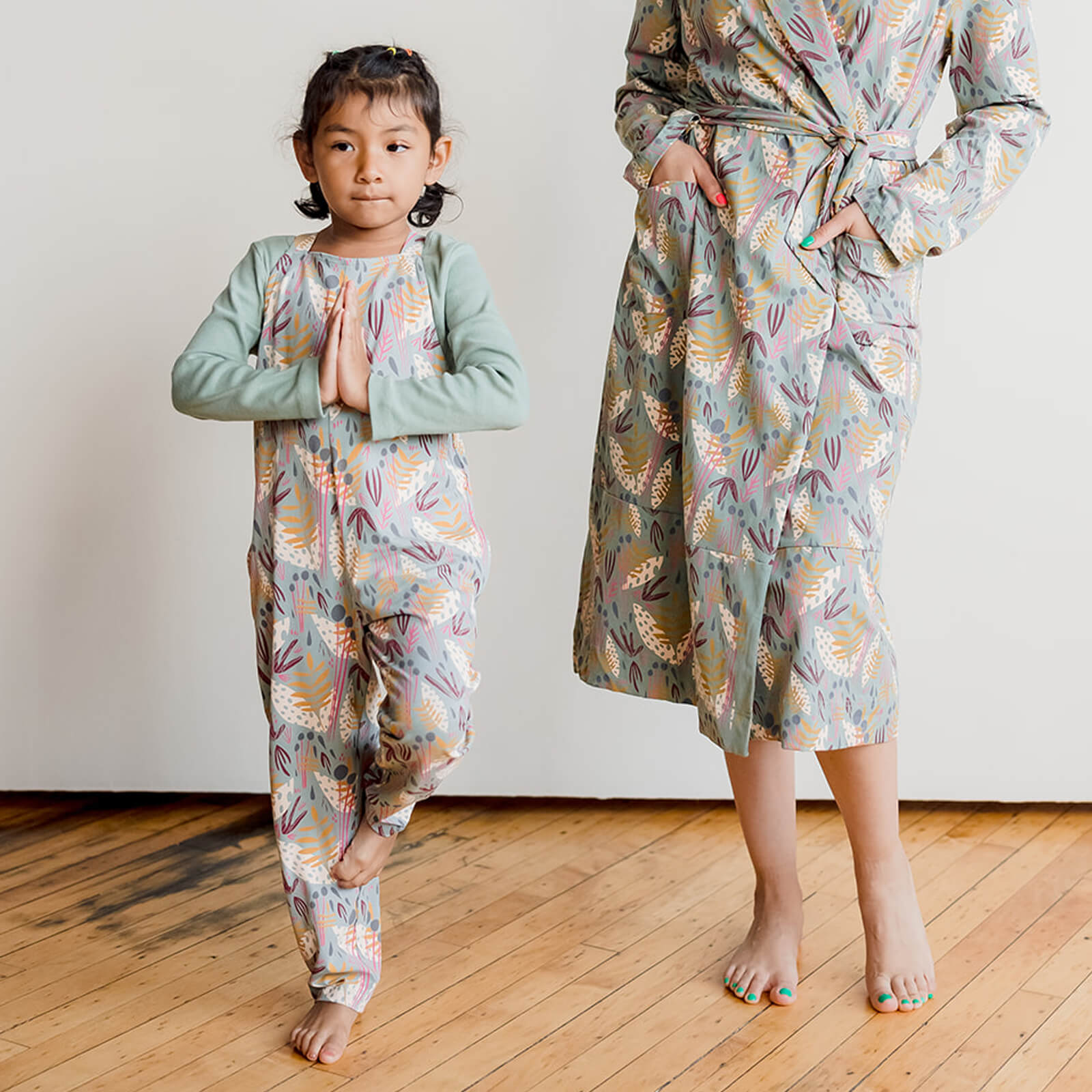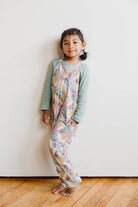 The special botanical Whimsy print by artist Abby Houston is inspired by the lush beauty of the Pacific Northwest. Each jumpsuit tells a story of blooming flowers and verdant forests, sparking curiosity and a love for nature in your little explorer.