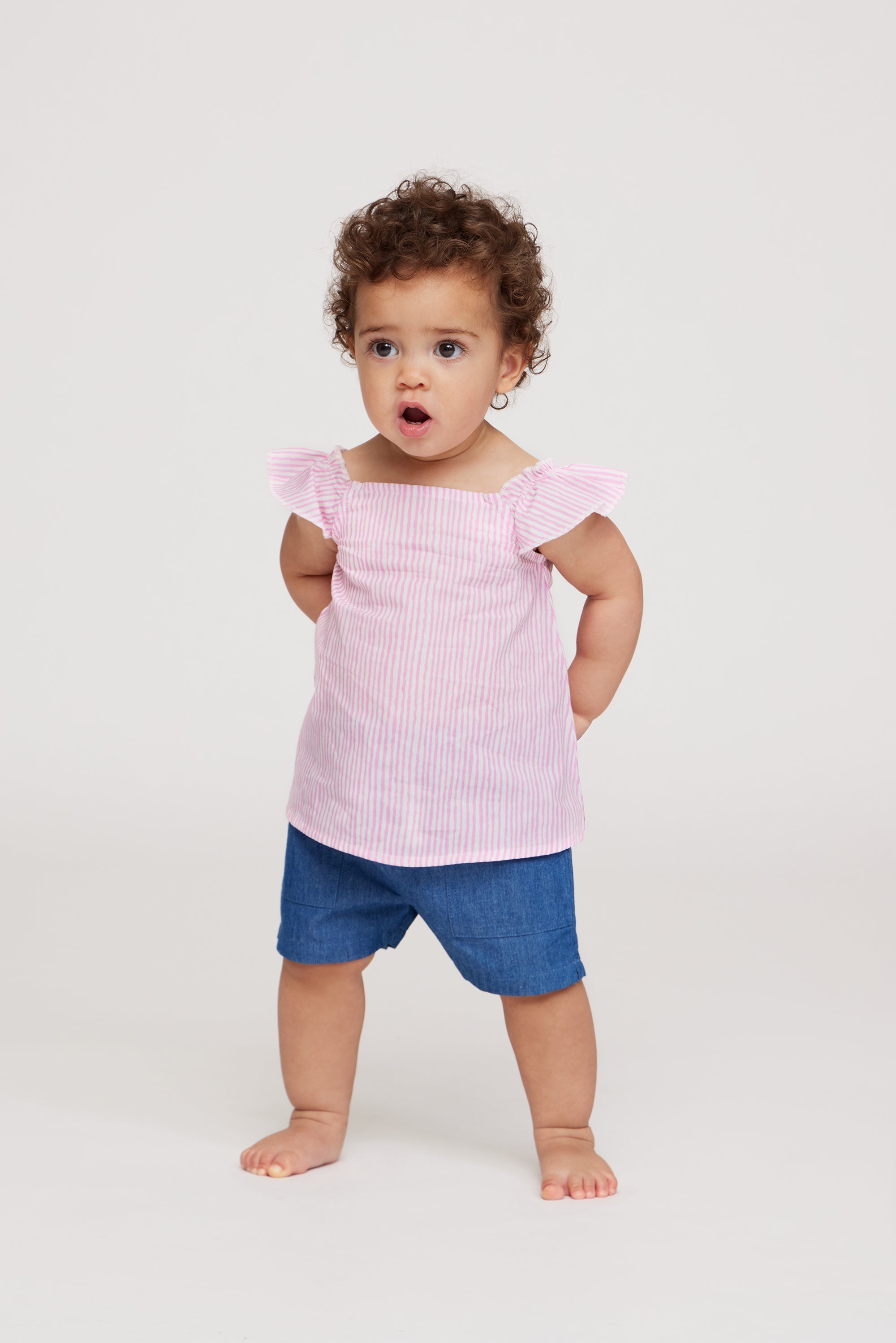 Is there any look more springtime-ready than chambray? These super cute 100% cotton Chambray Shorts not only feel cozy against their skin, but pair easily with the rest of your Mini's wardrobe for new sunny-sky looks each and every day!