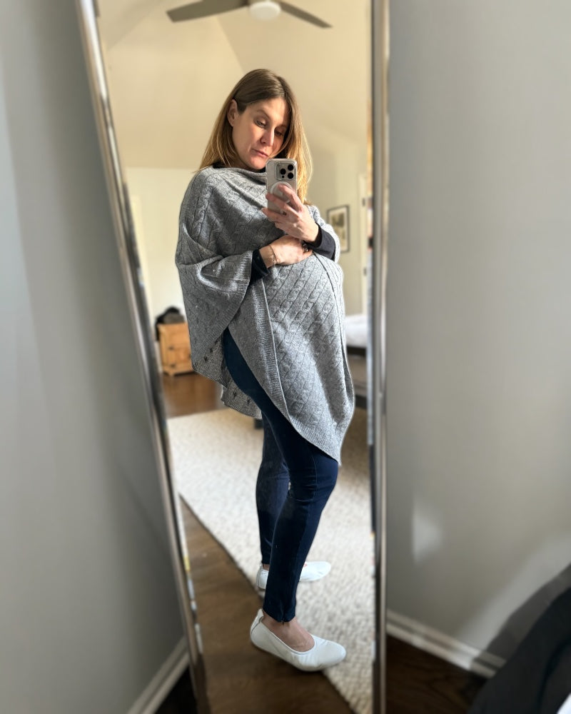 Wrap yourself in effortless elegance and unparalleled comfort with our Cashmere Nursing Poncho. Made from 100% luxuriously soft cashmere, this cable-knit wonder is equally chic and functional—perfect for every season and any occasion. Whether you're nursing on-the-go or simply looking to add a sophisticated layer to your outfit, this poncho has you covered—literally and stylishly. It's fine, lightweight knit keeps you warm yet breathable, offering comfort for both mom and baby. With a timeless design and classic silhouette, it’s a wardrobe staple you’ll reach for long after nursing days are behind you. Made in Italy with craftsmanship at its finest, this one-size piece is a versatile addition for every modern mama. Hand wash or dry clean only to keep it looking as pristine as the day you fell in love with it.