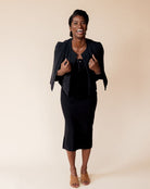 Featuring small set-in pockets on the front vest panels, this cape blazer combines fashion with functionality. Dress it up with tailored pants and heels for a professional look, pair it with jeans and flats for a more casual vibe or throw it over your favorite LBD for a sleek and sophisticated evening look.