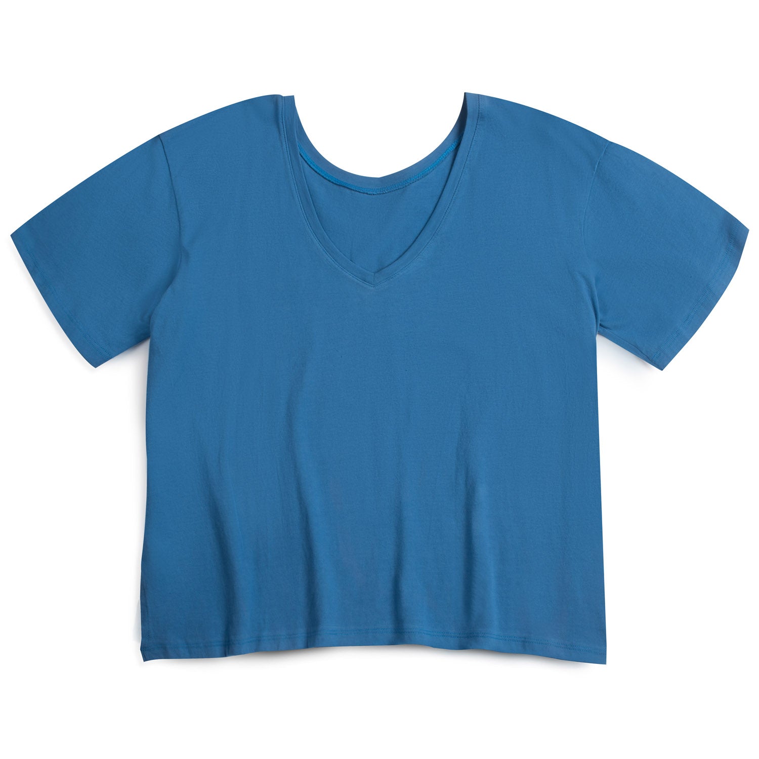 Made from soft and breathable 100% GOTS-certified organic cotton, this boxy V-neck tee will quickly become a staple in your wardrobe. Its tag-free neckline offers extra comfort and convenience, allowing you to reverse the V-neck to a crew neck effortlessly.