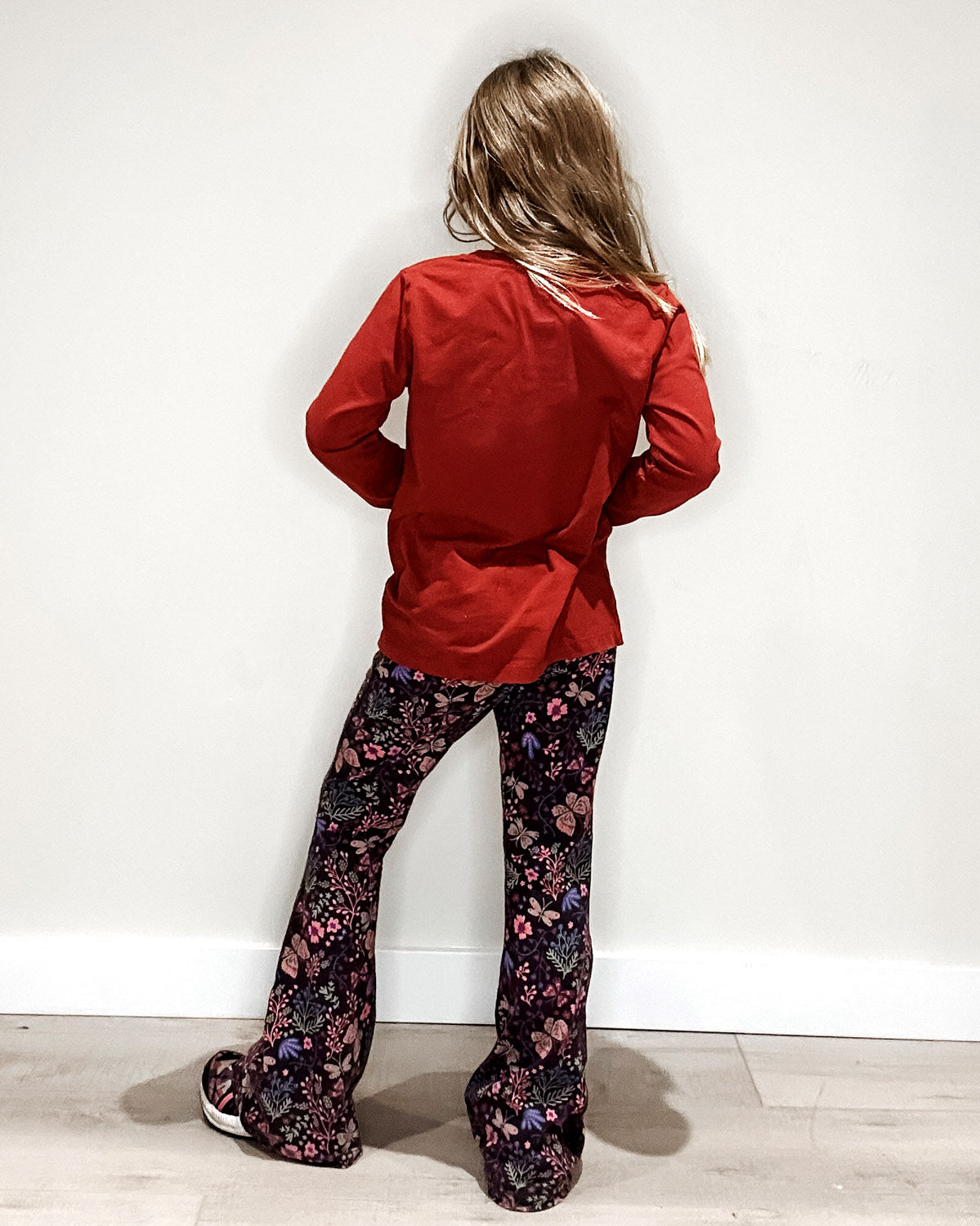 These leggings have a high rise and bootcut flared leg opening. They are perfect for school, dance class, yoga and weekend fun.