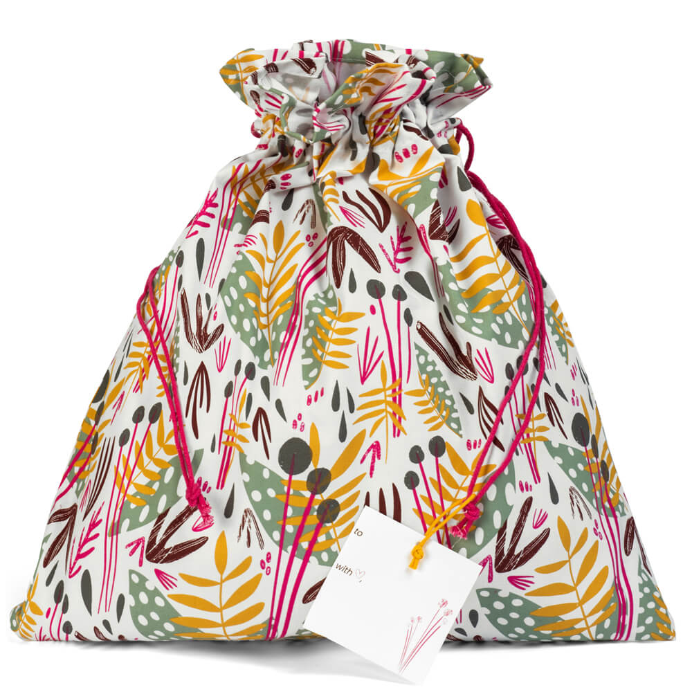 Reduce paper waste when gifting with Mightly's reusable fabric gift bags.